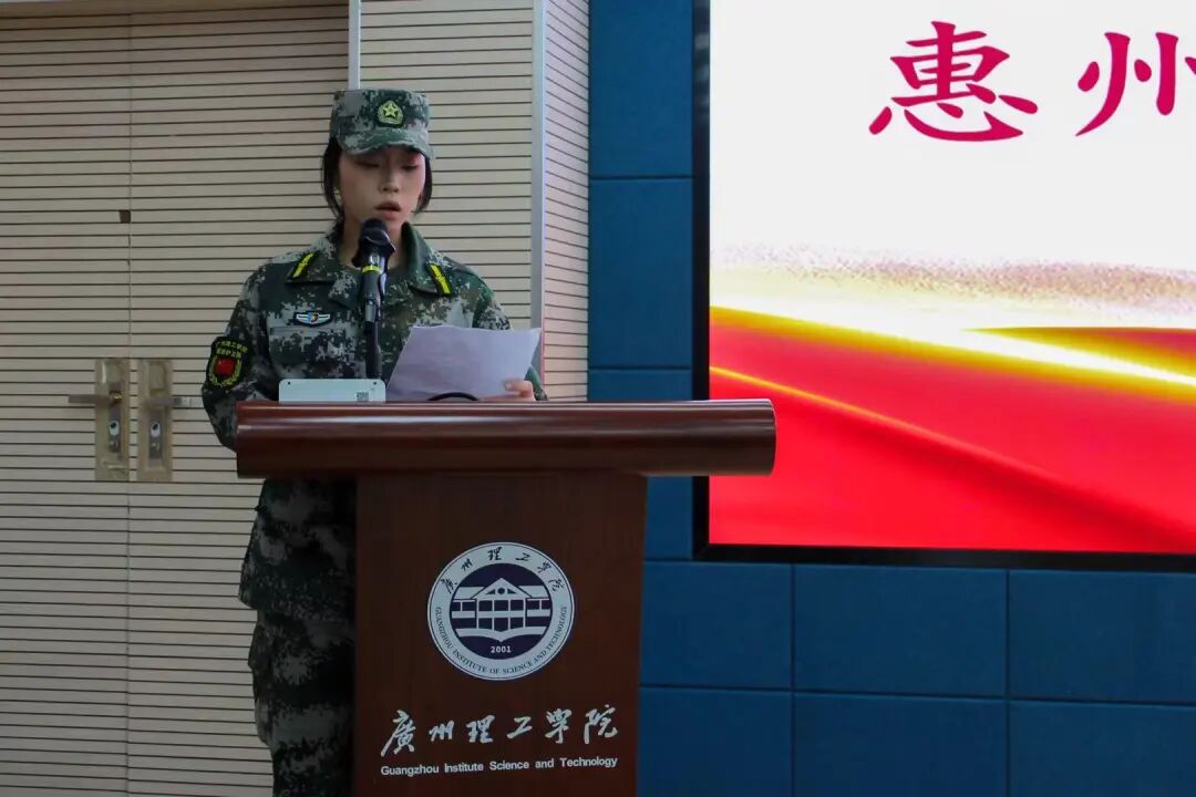 广州理工学院国旗护卫队于12月18日在惠州博罗校区行政楼204报告厅召开2025-2026年第一学期工作总结暨表彰大会,国旗护卫队指导老师丁广潮、王继浩以及国旗护卫队全体队员参加会议,会议由队员陈羽思主持。此次会议旨在激励国旗护卫队全体队员以更加昂扬的姿态投入到队伍的建设中去。